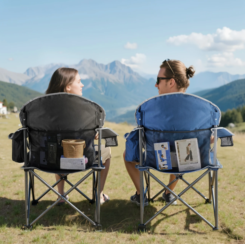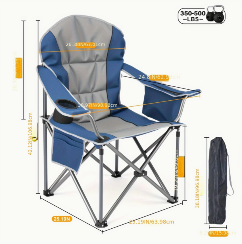 Heavy-Duty Folding Camping Chair – 350 lbs Capacity with Storage & Cooler Features