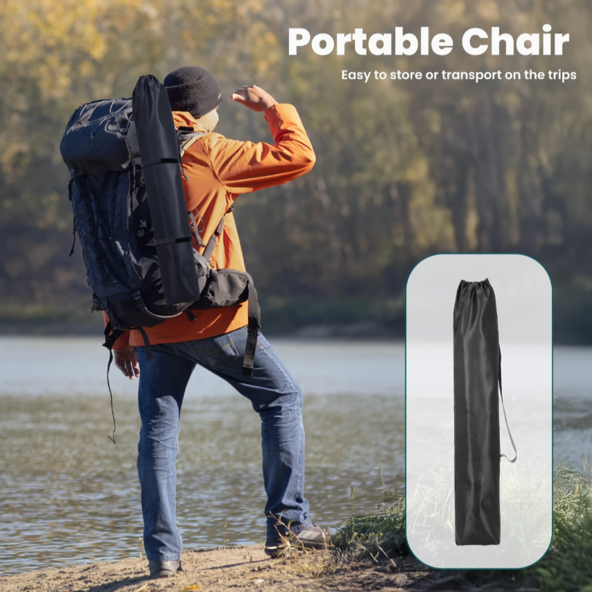 Designed with convenience in mind, this chair includes a built-in cup holder, side mesh storage pockets, and a cooler strap to keep your drinks close and cold. Non-slip foot pads add extra stability, and the included carry bag makes transport easy.