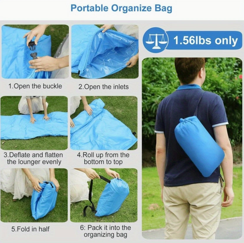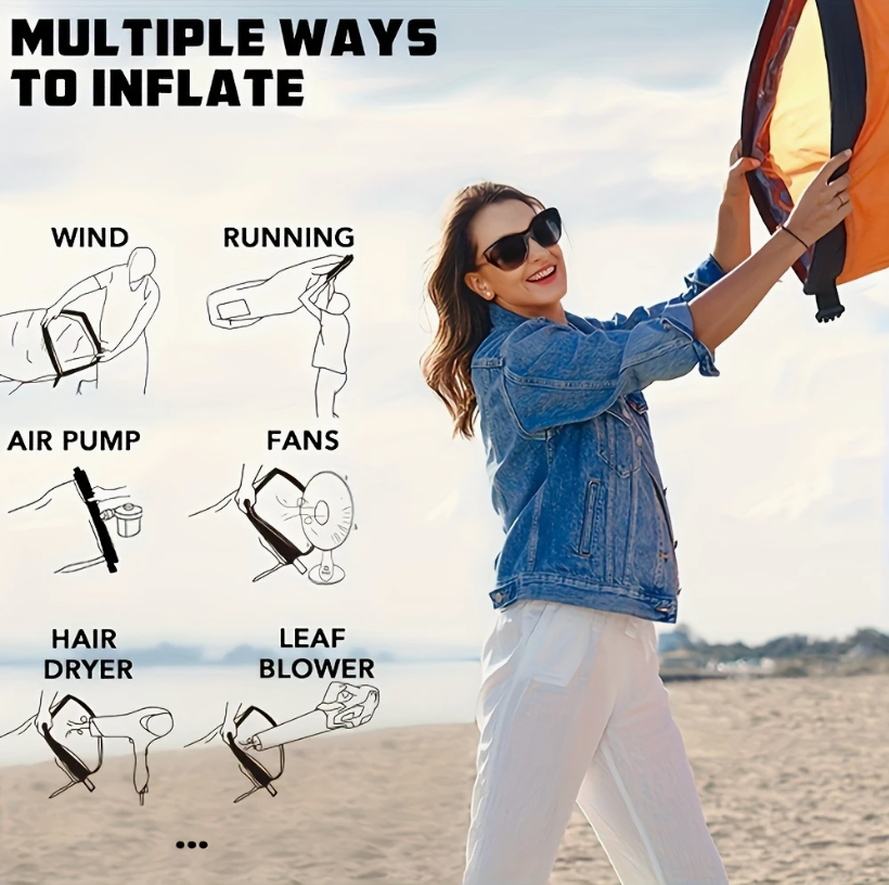 Relax anywhere with this lightweight, inflatable lounge chair designed for quick setup and total comfort. Ideal for outdoor adventures and casual lounging, this air sofa is perfect for lakeside days, beach trips, camping weekends, backyard hangs, and music festivals. No pump required—just scoop air to inflate in seconds and unwind in comfort wherever you are.