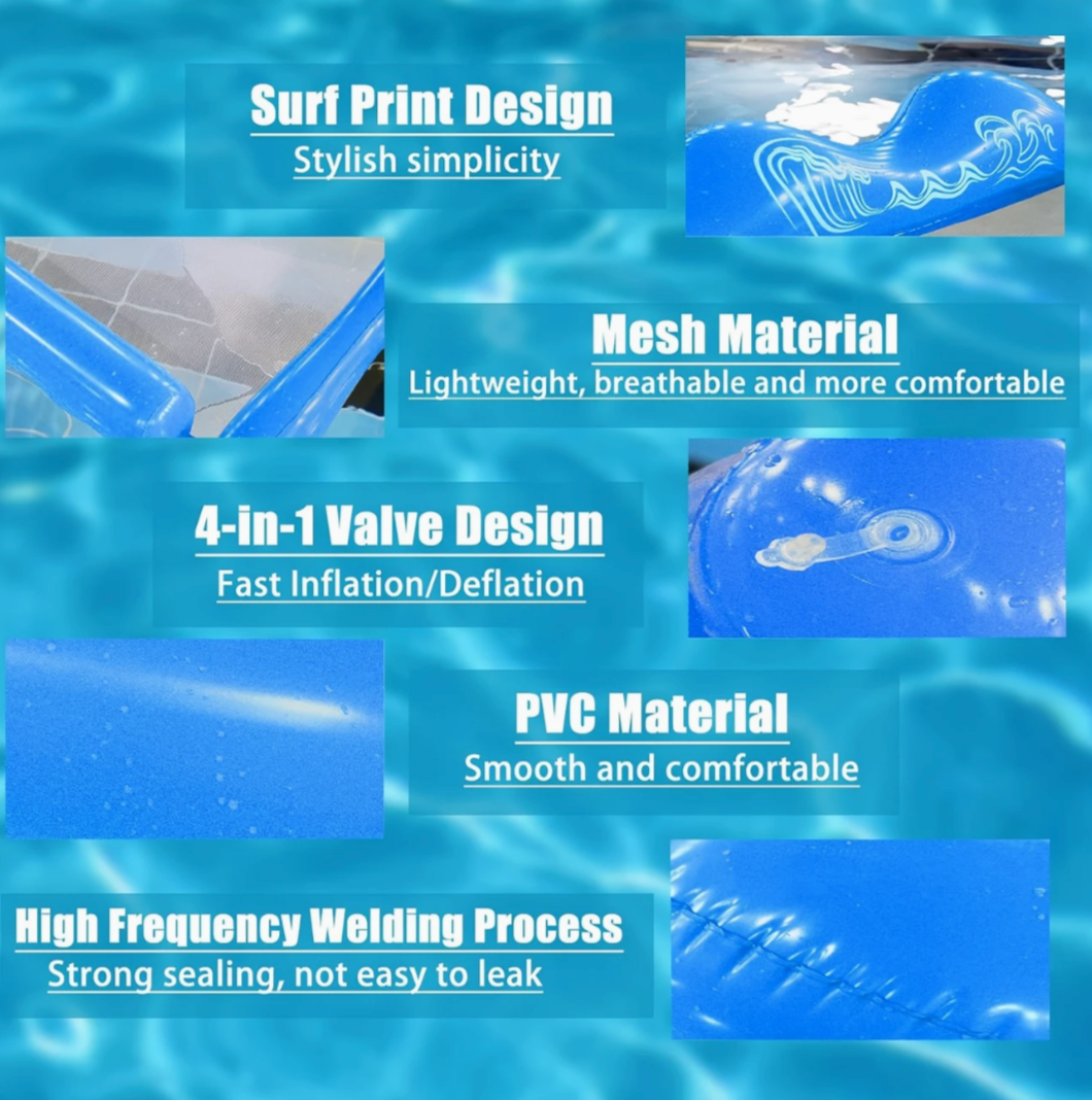 Relax in comfort with this multi-purpose inflatable hammock, designed for adults who love lounging on the water. Crafted with durable nylon and a breathable mesh seat, this floating lounger features an ergonomic design with built-in headrest and armrests for full-body support. Whether you're drifting in the pool, soaking up the sun at the lake, or floating by the boat, this hammock offers superior comfort and versatility. Lightweight, compact, and easy to inflate and deflate, it's perfect for travel, beach days, and poolside leisure.